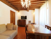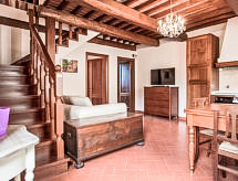 Rezidencija "Villa Belvedere", godina izgradnje 1600, renovirana godine 2013. 9 apartmana u kući. U centru mjesta Incisa in Val d'Arno 27 km od centra mjesta Greve in Chianti, 35 km od centra mjesta Firenze, 70 km od centra mjesta Siena, 60 km od jezera. Za zajedničko korištenje: vrt 5'000 m2 (ograđen), bazen (25 x 12 m, 120- 140 cm dubok, sezonska dostupnost: 23.Apr. - 08.Oct.). Vanjski tuš, vrtna garnitura za sjedenje, roštilj. U kući: recepcija, masaža (uz doplatu). Praona rublja, perilica za rublje, sušilica (za zajedničko korištenje), grijanje na raspolaganju samo od 01.11. do 15.04.. Promjena posteljine (dodatno uz doplatu). Dnevno čišćenje apartmana moguće (uz doplatu). Kuhar moguć (uz doplatu). Doručak na upit (uz doplatu). Parking na parceli. Trgovina 1 km, trgovina živežnim namirnicama 1 km, supermarket 1 km, željeznička postaja 2 km, jezero za kupanje "Lago di Bilancino" 55 km. Golf teren (18 rupa) 22 km, jahanje konja 1.5 km. U blizini: Impruneta 22 km, San Casciano in Val di Pesa 34 km, Radda in Chianti 35 km, Gaiole in Chianti 40 km, Outlet The Mall 7 km. Prikladno za evente. Dodatna informacija: Fotografija prikazuje samo tipičan primjer kuće. Mogućnost rezerviranja dodatnih smještajnih jedinica. Svi apartmani opremljeni sa LED TV 42 " i smart TV.Interior