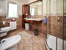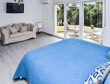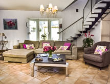 "Villa Buena Vida", 5 -sobna kuća. Prostrano i svijetlo, vrlo lijepo i ukusno uređena: dnevni boravak/blagovaona s TV-om sa sat. prijemnikom, digitalnim TV, međunarodnim TV kanalima, klima uređajem i grijanjem na topli zrak. Izlaz na verandu, na mjesto za sjedenje u vrtu, na bazen. 1 soba s 1 franc. krevetom, tušem/WC-om, klima uređajem i grijanjem na topli zrak. 1 soba s 2 kreveta i kadom/WC-om. Otvorena kuhinja (pećnica, perilica za suđe, 5, mikrovalna pećnica). Gornji kat: 1 soba s Garderoba s 1 franc. krevetom, klima uređajem i grijanjem na topli zrak. Izlaz na balkon. 1 soba s 1 franc. krevetom, klima uređajem i grijanjem na topli zrak. Tuš/WC. Velika terasa (natkrita), prema jugu, vrt, sjenica. Na raspolaganju: perilica za rublje. Internet (wireless LAN [WLAN], besplatan). Parking. AT-468387-A- Aktivnosti u blizini