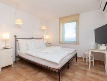4 -sobna kuća 105 m2 na 2 etaže. Ukusno i udobno uređena: dnevni boravak/blagovaona 28 m2 s 1 kaučem za 2 osobe (160 cm, dužina 200 cm), TV-om sa sat. prijemnikom i klima uređajem. Izlaz na terasu. 1 soba 18 m2 s 1 franc. krevetom (160 cm, dužina 200 cm), kadom/WC-om, TV-om sa sat. prijemnikom i klima uređajem. Otvorena kuhinja (pećnica, perilica za suđe, 4 staklokeramičke ploče za kuhanje, toster, kuhalo za vodu, mikrovalna pećnica, zamrzivač, el. aparat za kavu) s klima uređajem. Izlaz u vrt. Tuš/WC. Potkrovlje 2 sobe 17 m2, s kosim stropom, visina stropa 110 - 245 cm s krovnim prozorom, svaka soba s 2 kreveta (90 cm, dužina 200 cm), tušem/WC-om i klima uređajem. Grijanje toplim zrakom. Terasa 35 m2 (natkrita). Garnitura za sjedenje. Vrlo lijep panoramski pogled na more. Na raspolaganju: sef, glačalo, mrežice protiv komaraca, visoka dječja stolica, dječji krevetić. Internet (wireless LAN [WLAN], besplatan). Dodatna informacija: kuća za nepušače. U prizemlju (zaseban, vanjski ulaz): tuš/WC.- Značajke smještaja