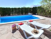 "Villa Cala Vidre A", 5 -sobna vila 170 m2. Komforno i udobno uređena: dnevni boravak/blagovaona s stolom za blagovanje, TV-om sa sat. prijemnikom i digitalnim TV. Izlaz na terasu. 2 sobe, svaka soba s 2 kreveta (90 cm). 1 velika soba s 1 franc. krevetom (150 cm). 1 soba s 1 krevetom (90 cm), 2 x 1 kreveta na kat (90 cm). Kuhinja (4 ploče za kuhanje, pećnica, perilica za suđe, toster, kuhalo za vodu, mikrovalna pećnica, el. aparat za kavu). Kada/bidet/WC, tuš/WC, duplim umivaonikom. Bez grijanja. Terasa. Garnitura za sjedenje, vrtni roštilj. Na raspolaganju: perilica za rublje, glačalo, visoka dječja stolica, dječji krevetić, sušilo za kosu. Internet (wireless LAN [WLAN], besplatan). Parking uz kuću. Dodatna informacija: prikladno za obitelji. 1 kućni ljubimac / pas dozvoljen. TV samo ES, DE, FR. HUTTE001018- Značajke smještaja