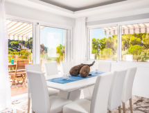 Mezquitilla: Lijepa, ugodna kuća "Villa Caleta", na 2 kata. Mirno mjesto u jednoj četvrti za stanovanje, 500 m od mora, 1.5 km od plaže. Za zajedničko korištenje: dječje igralište. Za samostalno korištenje: prekrasan vrt za opuštanje, bazen pravokutni (3 x 6 m, 100- 200 cm dubok, sezonska dostupnost: 31.Dec. - 01.Jan.). Vanjski tuš. U kući: biljar, igraonica za djecu, perilica za rublje. Parking. Trgovina 4 km, trgovina živežnim namirnicama 4 km, trgovački centar 17 km, restoran 4 km, pekara 4 km, pješačka zona 4 km, pješčana plaža "Mezquitilla" 1.5 km. Vlasnik ne prihvaća grupe mladih. Dodatna informacija: Moguć iskrcaj i ukrcaj prtljage uz kuću.Interior
