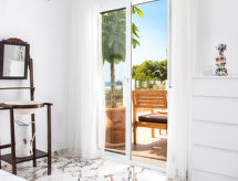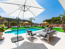 "Mezquitilla", 6 -sobna vila 200 m2. Komforno i ukusno uređena: dnevni boravak/blagovaona s digitalnim TV, međunarodnim TV kanalima i klima uređajem. Izlaz na terasu. 1 soba s 1 franc. krevetom (150 cm, dužina 200 cm), tušem/WC-om i klima uređajem. Izlaz na terasu. Velika, otvorena kuhinja (pećnica, perilica za suđe, 4 staklokeramičke ploče za kuhanje, toster, kuhalo za vodu, mikrovalna pećnica, zamrzivač, el. aparat za kavu, kombinirana mikrovalna pećnica). Bez grijanja. Donji kat: soba za igru. Izlaz na terasu, na bazen. Gornji kat: 1 soba s 1 franc. krevetom (150 cm, dužina 190 cm), klima uređajem. 1 soba s 1 franc. krevetom (150 cm, dužina 190 cm), tušem/WC-om i klima uređajem. 1 soba s 1 franc. krevetom (150 cm, dužina 190 cm), klima uređajem. Velika vrtna terasa. Garnitura za sjedenje, vrtni roštilj, ležaljke. Pogled na more i krajolik. Na raspolaganju: perilica za rublje, glačalo, visoka dječja stolica, dječji krevetić, sušilo za kosu. Internet (wireless LAN [WLAN], besplatan). VFT/MA45238- postrojenja