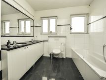 7 -sobna kuća 222 m2 na 2 etaže. Dnevni boravak/blagovaona 55 m2 s TV-om sa sat. prijemnikom (plosnatim TV ekranom), klima uređajem. Izlaz na terasu. 2 sobe, svaka soba s 1 franc. krevetom (180 cm, dužina 200 cm), klima uređajem. Otvorena kuhinja (pećnica, perilica za suđe, 4 staklokeramičke ploče za kuhanje, zamrzivač, el. aparat za kavu). Kada/tuš/WC. Potkrovlje 1 soba s kosim stropom, visina stropa 100 - 300 cm s 1 franc. krevetom (180 cm, dužina 200 cm), klima uređajem. 1 soba s kosim stropom, visina stropa 100 - 300 cm s 1 franc. krevetom (180 cm, dužina 200 cm), klima uređajem. Izlaz na terasu. 1 soba s kosim stropom, visina stropa 100 - 300 cm s 2 kreveta (90 cm, dužina 200 cm), klima uređajem. 1 soba s kosim stropom, visina stropa 100 - 300 cm s 2 kreveta (90 cm, dužina 200 cm). S kosim stropom blagovaona 24 m2, visina stropa 100 - 300 cm. S kosim stropom blagovaona, visina stropa 100 - 300 cm s kuhinjskim blokom. S kosim stropom, otvorena kuhinja (pećnica, perilica za suđe, 4 staklokeramičke ploče za kuhanje) s klima uređajem. 2 x tuš/WC. Terasa 15 m2 (natkrita), terasa 10 m2 (natkrita). Garnitura za sjedenje, ležaljke. Pogled na bazen i krajolik. Na raspolaganju: sef, dječji krevetić, sušilo za kosu. Internet (wireless LAN [WLAN], besplatan). 1 kućni ljubimac / pas dozvoljen.- postrojenja
