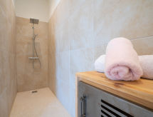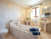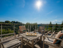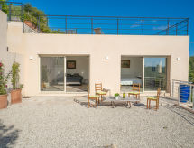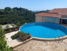 3 -sobna vila 180 m2 na 2 etaže. Prostrano, komforno uređena: veliki dnevni boravak/blagovaona s stolom za blagovanje i TV-om (plosnatim TV ekranom). Izlaz na terasu. 1 soba s 1 franc. krevetom (1 x 140 cm, dužina 190 cm). Velika kuhinja/dn. boravak (4 ploče za kuhanje, pećnica, perilica za suđe, kuhalo za vodu, mikrovalna pećnica, zamrzivač, el. aparat za kavu). Kada/WC. Grijanje na plin. Donji kat: 1 velika soba s 1 krevetom (90 cm, dužina 190 cm), 1 franc. krevetom (1 x 200 cm, dužina 200 cm), tušem/WC-om. Izlaz u vrt, na terasu. Prirodni kameni pod. Velika terasa. Garnitura za sjedenje, vrtni roštilj. Pogled na more, planine i dolinu. Na raspolaganju: perilica za rublje, glačalo, sušilo za kosu. Internet (wireless LAN [WLAN], besplatan). Parking (ograđen, 3 automobila). Dodatna informacija: 1 kućni ljubimac / pas dozvoljen. Protupožarni alarm. 06027016741DP- Značajke smještaja