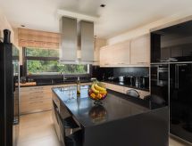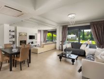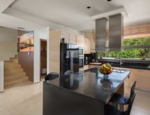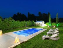 "Villa Elena", 5 -sobna vila 260 m2 na 3 etaže. Prostrano i svijetlo, komforno i moderno uređena: otvoreni veliki dnevni boravak s otvorenim kaminom i TV-om sa sat. prijemnikom (plosnatim TV ekranom). Izlaz na mjesto za sjedenje u vrtu, na bazen. Otvorena kuhinja (pećnica, perilica za suđe, 4 staklokeramičke ploče za kuhanje, mikrovalna pećnica, zamrzivač, el. aparat za kavu) s stolom za blagovanje. Odv. WC. Klima uređaj. Gornji kat: (stepenice bez rukohvata) 1 soba s 1 bračnim krevetom i tušem/WC-om. Izlaz na balkon. 1 soba s 1 bračnim krevetom. Izlaz na balkon. 1 soba s 2 kreveta. Izlaz na balkon. Klima uređaj. 2. Gornji kat: (stepenice bez rukohvata) 1 soba s 1 bračnim krevetom i tušem/WC-om. Izlaz na balkon. Klima uređaj. 4 balkona, vrtna terasa, veliki vrt 200 m2. Vrtni roštilj, ležaljke. Pogled na bazen i krajolik. Na raspolaganju: perilica za rublje, sef, glačalo, sušilo za kosu. Internet (wireless LAN [WLAN], besplatan). Dodatna informacija: prikladno za obitelji. Kuća za nepušače. 1041998- postrojenja