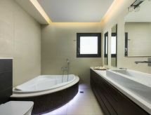 Velika, moderna vila "Villa Elena", na 3 kata, zasebna. U četvrti Ialyssos, 1.8 km od mora, 1.8 km od plaže. Za samostalno korištenje: veliki, njegovani vrt - cvijeće i drveće, travnjak za sunčanje, bazen pravokutni (24 m2, 140 cm dubok, sezonska dostupnost: 01.Apr. - 31.Oct.). Mjesto za sjedenje, terasa, roštilj. U kući: wireless LAN [WLAN], klimatizacija, perilica za rublje. Parking uz kuću. Trgovina 350 m, supermarket 300 m, restoran 400 m, pješčana plaža "Ialyssos" 1.8 km. U blizini: Acropolis of Rhodes 6.6 km, Temple of Apollonas 6.6 km, Archaeological Museum of Rhodes 8.5 km, Rodini Park 8.1 km. Dodatna informacija: preporučljiv vlastiti prijevoz. Oprema za bebe na upit (uklj.).Interior