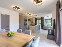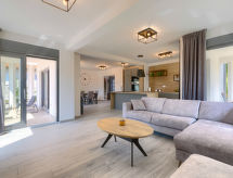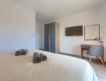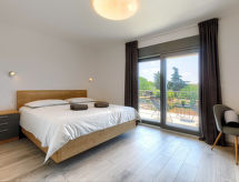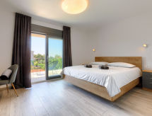 3 -sobna kuća 140 m2 na 2 etaže. Lijepo i ukusno uređena: dnevni boravak/blagovaona s 1 kaučem za 1 osobu (140 cm, dužina 200 cm), TV-om sa sat. prijemnikom (plosnatim TV ekranom), klima uređajem. Izlaz na terasu, na bazen. Otvorena kuhinja (4 ploče za kuhanje, pećnica, perilica za suđe, kuhalo za vodu, zamrzivač, el. aparat za kavu). Tuš/WC. Gornji kat: 2 sobe, svaka soba s 1 franc. krevetom (180 cm, dužina 200 cm), tušem/WC-om i TV-om sa sat. prijemnikom (plosnatim TV ekranom), klima uređajem. Izlaz na terasu. Terasa 15 m2 (natkrita), terasa 15 m2. Garnitura za sjedenje, vrtni roštilj (prijenosni), ležaljke. Pogled na bazen. Na raspolaganju: glačalo, visoka dječja stolica, dječji krevetić, sušilo za kosu. Internet (wireless LAN [WLAN], besplatan).- postrojenja