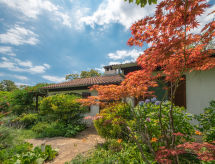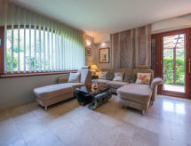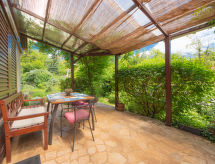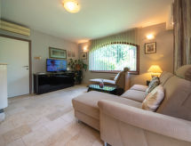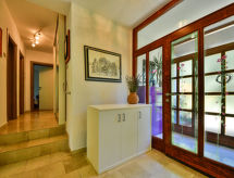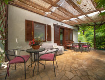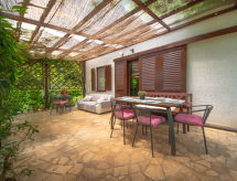 4 -sobna kuća 115 m2, prema jugozapadu. Dnevni boravak/blagovaona 30 m2 s otvorenim kaminom i TV-om sa sat. prijemnikom (plosnatim TV ekranom), klima uređajem. Izlaz u vrt, na terasu. Predsoblje s klima uređajem. 1 soba s 2 kreveta (90 cm, dužina 200 cm). 1 soba s 1 franc. krevetom (140 cm, dužina 190 cm). 1 soba s 1 franc. krevetom (150 cm, dužina 190 cm). Otvorena kuhinja (4 ploče za kuhanje, pećnica, perilica za suđe, zamrzivač, el. aparat za kavu). Tuš/bidet/WC, odv. WC, hidromasažnim tušem. Terasa 20 m2 (natkrita). Garnitura za sjedenje, ležaljke. Pogled na vrt. Na raspolaganju: dječji krevetić, sušilo za kosu. Internet (wireless LAN [WLAN], besplatan).- postrojenja