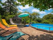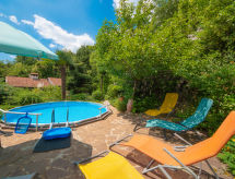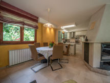 Obiteljska kuća "Villa Hofbauer". Iznad mjesta Lovran, u zaseoku Dobreć, 4 km od centra mjesta Lovran, izolirano, mirno, povišeno mjesto, direktno na rubu šume, 4 km od mora, u zelenom. Za samostalno korištenje: parcela 1'000 m2 (ograđena), vrt - bilje i cvijeće, bazen (iznad zemlje) okrugli (4,7 m promjer, 90 cm dubok, sezonska dostupnost: 15.May. - 30.Sep.). Vanjski tuš, roštilj. U kući: pristup internetu, perilica za rublje. Parking (za 4 automobila) uz kuću na parceli. Trgovina 200 m, restoran 4 km, šljunčana plaža 4 km, kupalište 4 km, betonirana plaža 4 km. Sportski centar 150 m.Interior
