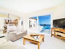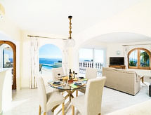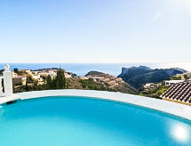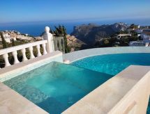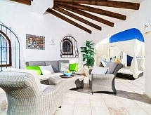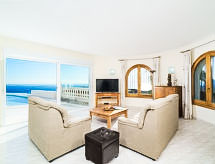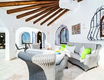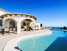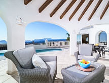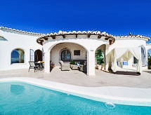 Cumbre del Sol: Lijepa, komforna vila "Villa Kalmias". 6 km od centra mjesta Moraira, mirno, sunčano mjesto na brežuljku, 1.3 km od mora, 1.3 km od plaže. Za samostalno korištenje: parcela, bazen u obliku bubrega (13 x 2 m, sezonska dostupnost: 01.Jan. - 31.Dec.). U kući: wireless LAN [WLAN], klimatizacija. Parking (za 2 automobila) na parceli. Supermarket 2.5 km, restoran 2.5 km, bar 2.5 km, pješčana plaža 6 km šljunčana plaža 2.4 km. Golf teren (9 rupa) 7 km. Dodatna informacija: preporučljiv vlastiti prijevoz. Prikladno za obitelji, prikladno za starije osobe.Interior