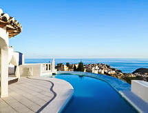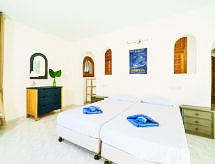 "Villa Kalmias", 5 -sobna vila 140 m2. Svijetlo, komforno uređena: otvoreni dnevni boravak/blagovaona s švedskom peći, TV-om sa sat. prijemnikom, plosnatim TV ekranom i klima uređajem. Izlaz na terasu, na bazen. 1 soba s 1 krevetom na izvlačenje (2 osobe), kadom/WC-om i klima uređajem. 1 soba s 1 bračnim krevetom, tušem/WC-om i klima uređajem. 1 soba s 1 bračnim krevetom, kadom/tušem/WC-om i klima uređajem. Otvorena kuhinja (pećnica, perilica za suđe, mikrovalna pećnica, zamrzivač, el. aparat za kavu). Velika terasa (djelomično natkrita). Garnitura za sjedenje, ležaljke. Prekrasan panoramski pogled na more, planine i krajolik. Na raspolaganju: perilica za rublje. Internet (wireless LAN [WLAN]). Parking (ograđen). Dodatna informacija: prikladno za obitelji. Kuća za nepušače. AT-463196-A- Značajke smještaja