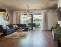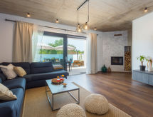 Dvojna kuća "Villa Leonardo (PRC424)", na 2 kata, godina izgradnje 2019. U zaseoku Vežnaveri 4 km od centra mjesta Poreč, 2 km od centra mjesta Nova Vas, 50 km od centra mjesta Pula, 4 km od mora, 4 km od plaže. Za samostalno korištenje: parcela 250 m2 (ograđena) - travnjak, bazen (6 x 4 m, 150 cm dubok, sezonska dostupnost: 01.May. - 01.Oct.). Vanjski tuš, terasa. Bazen održava vlasnik/vrtlar. U kući: pristup internetu, perilica za rublje. Parking (za 2 automobila) na parceli. Trgovina 2 km, supermarket 3 km, šljunčana plaža 4 km, stjenovita plaža 4 km.Interior