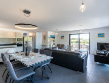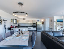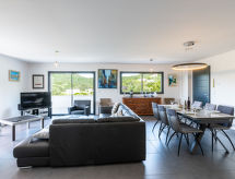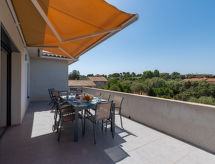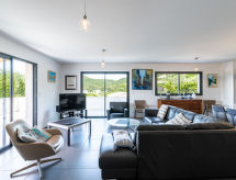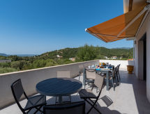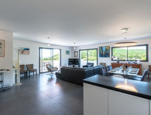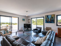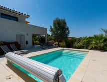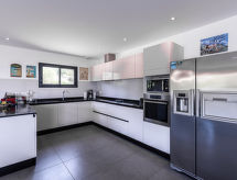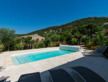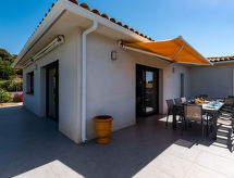 "Villa Les Myrtes", 6 -sobna vila 175 m2 na 2 etaže. Komforno i udobno uređena: veliki dnevni boravak/blagovaona 65 m2 s odv. WC-om i plosnatim TV ekranom. Izlaz na terasu. 1 soba s 1 franc. krevetom (160 cm, dužina 190 cm). 1 soba s 1 franc. krevetom (160 cm, dužina 190 cm). Velika, otvorena kuhinja (pećnica, perilica za suđe, 4 Indukcione ploče, toster, kuhalo za vodu, mikrovalna pećnica, zamrzivač, el. aparat za kavu). Tuš/WC. Donji kat: 1 soba s 1 franc. krevetom (160 cm, dužina 190 cm). 1 soba s 2 kreveta (90 cm, dužina 190 cm). 1 mala soba s 1 kaučem za 1 osobu (140 cm, dužina 190 cm). Tuš/WC. Terasa 36 m2 terasa 24 m2 (natkrita). Garnitura za sjedenje, ležaljke (6). Djelomičan pogled na more i planine. Na raspolaganju: perilica za rublje, glačalo, sušilo za kosu. Internet (wireless LAN [WLAN]). Dodatna informacija: apartman za nepušače. Protupožarni alarm. Ponuda od strane fizičke osobe u skladu s člankom 155, IV, CGI.- postrojenja