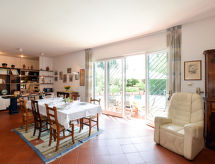 "Villa Lucia", 4 -sobna polovica dvojne kuće 140 m2, u prizemlju. Antikno i ukusno uređena: dnevni boravak/blagovaona s otvorenim kaminom, stolom za blagovanje, TV-om sa sat. prijemnikom, CD-om i muzičkom linijom. Izlaz na terasu. 1 soba s 1 bračnim krevetom. Izlaz na terasu. 1 soba s 2 kreveta. 1 mala soba s 2 kreveta. Otvorena kuhinja (pećnica, perilica za suđe, 4 plamena za kuhanje, mikrovalna pećnica, el. aparat za kavu). Tuš, tuš/WC, odv. WC. Grijanje na plin. 2 terase, vrt, travnjak. Garnitura za sjedenje, vrtni roštilj. Na raspolaganju: visoka dječja stolica, dječji krevetić. Internet (wireless LAN [WLAN], besplatan). Parking. Dodatna informacija: kuća za nepušače. U slučaju boravka manjeg broja gostiju od maksimalnog kapaciteta objekta, neće biti na raspolaganju sve spavaće sobe.- postrojenja