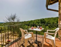 "Dependance di Villa Magna", 3 -sobna kuća 70 m2 na 2 etaže. Djelomično renovirana godine 2022, svrsishodno i udobno uređena: dnevno-spavaća soba s 1 kaučem za 2 osobe, otvorenim kaminom, stolom za blagovanje i TV-om sa sat. prijemnikom (plosnatim TV ekranom). Kuhinja (pećnica, perilica za suđe, Plinski štednjak, 4 plamena za kuhanje, toster, kuhalo za vodu, el. aparat za kavu). Gornji kat: 1 bračna soba. 1 soba s 1 krevetom (80 cm, dužina 190 cm). Izlaz na terasu, na mjesto za sjedenje u vrtu. Tuš/bidet/WC. Grijanje na plin. Prirodni kameni pod. Terasa, vrtna terasa. Garnitura za sjedenje, vrtni roštilj, ležaljke, ostava. Lijep pogled na krajolik. Na raspolaganju: perilica za rublje, glačalo, visoka dječja stolica, dječji krevetić do 2 godine, sušilo za kosu. Internet (wireless LAN [WLAN], besplatan). Garaža (1 automobil) uz kuću. Dodatna informacija: prikladno za obitelji. Apartman za nepušače. 1 kućni ljubimac / pas dozvoljen. Vlastiti ulaz. Raspored kreveta je fleksibilan. Dostupno je više mogućnosti za spavanje od maksimalno dopuštenog broja osoba koji se ipak ne smije prekoračiti Na licu mjesta nema naplate dodatnih troškova, osim boravišne pristojbe.- postrojenja