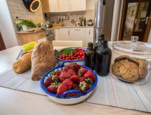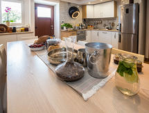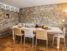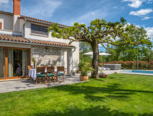 Sv. Lovreč 12 km od mjesta Poreč: Lijepa dvojna kuća "Villa Marina", na 2 kata, renovirana godine 2018. U zaseoku Vošteni 2 km od centra mjesta Sv. Lovreč, mirno, sunčano mjesto, 7 km od mora. Za samostalno korištenje: parcela 700 m2 (ograđena), vrt - travnjak i bilje, bazen pravokutni (8 x 4 m, 140 cm dubok, sezonska dostupnost: 01.May. - 01.Oct.) s unutarnjim stepenicama. Vanjski tuš, hidromasažni bazen, terasa (30 m2), vrtna garnitura za sjedenje, roštilj. U kući: pristup internetu, perilica za rublje. Parking (za 3 automobila) uz kuću na parceli. Trgovina 2 km, supermarket 12 km, restoran 150 m, šljunčana plaža 12 km, stjenovita plaža 12 km. Pješačke staze od kuće 50 m, biciklistička staza 100 m. U blizini: adventure park 3 km, Lim valley 7 km, aquapark 17 km, amusement park 17 km. Mogućnost kupnje autohtonih namirnica (na upit, uz doplatu).Interior