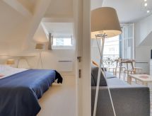 Kuća s više apartmana "Villa Maurice", na 2 kata. Biarritz, u srcu grada, 450 m od mora, 450 m od plaže. Trgovina 100 m, trgovina živežnim namirnicama 230 m, restoran 100 m, pekara 150 m, pješice 1 minuta do centra, autobusna postaja "Larralde" 95 m, željeznička postaja "Gare de Biarritz" 2.8 km, pješčana plaža "Grande Plage", natkriveni bazen 450 m. Golf teren (18 rupa) 2.5 km, škola jedrenja na dasci 450 m. U blizini: Aquarium de Biarritz 1 km, Le marché des Halles 500 m, Salle de spectacle Gare du Midi 350 m. Pješačke staze: La milady 2.5 km. Dodatna informacija: nema dizala. Ključeve ćete preuzeti u turističkoj agenciji Interhome 1 km.Interior