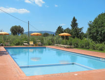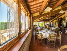 Mali turistički kompleks "Villa Monnalisa", na 2 kata, okružen drvećem. 3 kuće u turističkom naselju. 8 apartmana u residenceu. 1 km od centra mjesta Pian di Scò, 55 km od centra mjesta Arezzo, 55 km od centra mjesta Firenze. Za zajedničko korištenje: parcela (ograđena), njegovani vrt - travnjak i cvijeće, voćnjak, bazen ograđen (17 x 7 m, 40- 150 cm dubok, sezonska dostupnost: 01.Jun. - 20.Sep.). Bazen za djecu, vanjski tuš, stolni tenis, terasa, roštilj, dječje igralište. Bazen održava vlasnik/vrtlar. U kompleksu: recepcija, restoran, bar, wireless LAN [WLAN], stolni tenis. 200 m dugački uski prilaz autom (200 m bijela cesta). Parking. Supermarket 1 km, željeznička postaja "Figline Valdarno" 9 km. Dodatna informacija: vlasnik živi u istoj kući.Interior