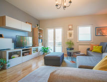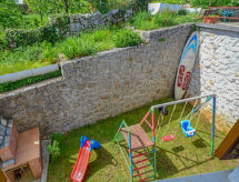 Tuliševica 5 km od mjesta Lovran: Ugodna dvojna kuća "Villa More". Iznad mjesta Lovran, u zaseoku Tuliševica 8 km od centra mjesta Opatija, mirno, sunčano mjesto na padini, 6 km od mora, 6 km od plaže, u zelenom, prema jugu. Za samostalno korištenje: livada 400 m2, travnjak za sunčanje, bazen okrugli (4 m promjer, 120 cm dubok, sezonska dostupnost: 01.May. - 15.Oct.). Košarka, odbojka, terasa (21 m2), vrtna garnitura za sjedenje, roštilj, ognjište, dječje igralište (tobogan, ljuljačka). Parking (natkriti) uz kuću na parceli. Trgovina 500 m, supermarket 5 km, restoran 1 km, šljunčana plaža 6 km, plaža s oblucima 6 km, stjenovita plaža 6 km, natkriveni bazen 6 km, kupalište 6 km. Tenis 6 km.Interior