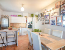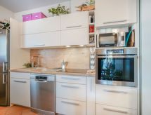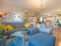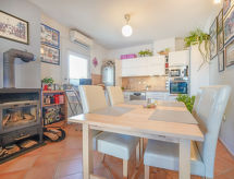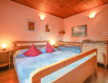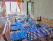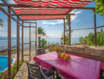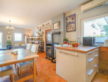 6 -sobna kuća 200 m2 na 2 etaže na 1. katu. Lijepo i ukusno uređena: veliki dnevni boravak/blagovaona 42 m2 s TV-om sa sat. prijemnikom (plosnatim TV ekranom), klima uređajem. Izlaz na balkon. 1 soba s 1 franc. krevetom (180 cm, dužina 200 cm). 1 soba s 1 krevetom (90 cm, dužina 200 cm), 1 krevetom na izvlačenje (dužina 200 cm). Izlaz na balkon. Otvorena kuhinja (pećnica, perilica za suđe, 4 staklokeramičke ploče za kuhanje, mikrovalna pećnica, zamrzivač, el. aparat za kavu). Kada/bidet/WC, odv. WC. Gornji kat: 1 soba s 1 franc. krevetom (160 cm, dužina 200 cm). Izlaz na balkon. 1 soba s 1 krevetom (90 cm, dužina 200 cm), 1 franc. krevetom (180 cm, dužina 200 cm). Izlaz na balkon. 1 soba s 1 franc. krevetom (180 cm, dužina 200 cm). Blagovaona s TV-om sa sat. prijemnikom (plosnatim TV ekranom). Otvorena kuhinja (pećnica, perilica za suđe, 4 staklokeramičke ploče za kuhanje, el. aparat za kavu). Kada/bidet/WC, tuš/WC. Grijanje (uz doplatu), klima uređaj (uz doplatu). 2 balkona 17 m2, prema jugu. Garnitura za sjedenje, ležaljke. Prekrasan panoramski pogled na more, krajolik i mjesto. Na raspolaganju: perilica za rublje, visoka dječja stolica, dječji krevetić, sušilo za kosu, stol za presvlačenje beba. Internet (wireless LAN [WLAN], besplatan). Dodatna prostorija, 21 m2, s otvorenim kaminom i barom. Tchibo Cafissimo aparat za espresso kavu (bez kapsula za kavu) u otvorenoj kuhinji na donjoj etaži.- Aktivnosti u blizini