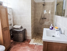 4 -sobna kuća 95 m2 na 2 etaže. Lijepo uređena: dnevni boravak/blagovaona s otvorenim kaminom (samo za dekoraciju), TV-om (plosnatim TV ekranom). Izlaz na verandu. 2 sobe, svaka soba s 1 franc. krevetom (140 cm, dužina 190 cm). Otvorena kuhinja (pećnica, perilica za suđe, 3 Indukcione ploče, zamrzivač, el. aparat za kavu). Izlaz na terasu. Tuš/WC. Gornji kat: 1 soba s 2 kreveta. Velika terasa (djelomično natkrita), prema zapadu. Garnitura za sjedenje. Na raspolaganju: perilica za rublje. Internet (wireless LAN [WLAN], uz doplatu). Dodatna informacija: protupožarni alarm. Napomena: utorkom i petkom tržnica ispred kuće do 14:00 sati, nezgodno za parkirati auto.- postrojenja