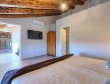 5 -sobna kuća 210 m2 na 3 etaže. Komforno uređena: dnevni boravak/blagovaona 60 m2 s TV-om sa sat. prijemnikom (plosnatim TV ekranom), klima uređajem. Izlaz na terasu. Otvorena kuhinja (pećnica, perilica za suđe, 4 staklokeramičke ploče za kuhanje, mikrovalna pećnica, zamrzivač, el. aparat za kavu). Odv. WC. Gornji kat: 1 soba s 1 franc. krevetom (180 cm, dužina 200 cm), tušem/WC-om i TV-om sa sat. prijemnikom (plosnatim TV ekranom), klima uređajem. 1 soba s 2 kreveta (90 cm, dužina 200 cm), kadom/WC-om i TV-om sa sat. prijemnikom (plosnatim TV ekranom), klima uređajem. Izlaz na balkon. 2. Gornji kat: 2 sobe, svaka soba s 1 franc. krevetom (180 cm, dužina 200 cm), tušem/WC-om i TV-om sa sat. prijemnikom (plosnatim TV ekranom), klima uređajem. Balkon 12 m2, terasa 15 m2 (natkrita). Garnitura za sjedenje, vrtni roštilj (prijenosni), ležaljke. Pogled na bazen i vrt. Na raspolaganju: sef, visoka dječja stolica, dječji krevetić, sušilo za kosu. Internet (wireless LAN [WLAN], besplatan).- Značajke smještaja