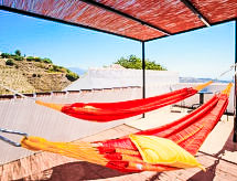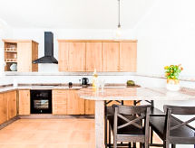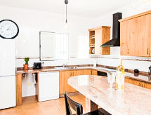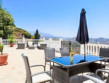 "Villa Rosa Blanca", 4 -sobna kuća 120 m2. Svijetlo, komforno i ukusno uređena: dnevni boravak/blagovaona s TV-om, peći na drva i klima uređajem. 1 soba s 2 kreveta (90 cm, dužina 200 cm), ventilatorom. 1 soba s 2 kreveta (90 cm, dužina 200 cm), ventilatorom. 1 soba s 1 krevetom (180 cm, dužina 200 cm), tušem/WC-om i klima uređajem. Kuhinja (pećnica, perilica za suđe, 4 staklokeramičke ploče za kuhanje). Tuš/WC. Velika terasa. Garnitura za sjedenje, vrtni roštilj, ležaljke. Panoramski pogled na more. Na raspolaganju: perilica za rublje, sušilica. Internet (wireless LAN [WLAN], besplatan). Prikladno za obitelji. CR/MA/01261- postrojenja