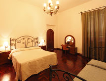 12 -sobna vila 550 m2 na 3 etaže. Rustikalno uređena: dnevni boravak/blagovaona s stolom za blagovanje i TV-om. Izlaz u vrt. Kuhinja (pećnica, perilica za suđe, 5 plamena za kuhanje, toster, kuhalo za vodu, el. aparat za kavu) s stolom za blagovanje. Izlaz u vrt. Kada/bidet/WC, odv. WC. Grijanje na plin. Gornji kat: (kružne stepenice) dnevni boravak/blagovaona s otvorenim kaminom i TV-om. 2 sobe, svaka soba s 1 krevetom (85 cm), 1 franc. krevetom (160 cm). 1 soba s 2 kreveta (85 cm). 1 soba s 3 kreveta (85 cm). (vanjske stepenice) 1 soba s 1 franc. krevetom (160 cm). 1 soba s 2 kreveta (85 cm). Kuhinja/dn. boravak (1 ploča za kuhanje, pećnica) s stolom za blagovanje, peći za grijanje. 2 x kada/bidet/WC, tuš/bidet/WC, sjedeća kada/bidet/WC. Grijanje na plin. 2. Gornji kat: 1 otvorena soba s 1 bračnim krevetom. Izlaz na terasu. Parketni pod. Panoramski pogled. Na raspolaganju: perilica za rublje, glačalo, dječji krevetić do 2 godine. Parking uz kuću. Dodatna informacija: kuća za nepušače. Najviše 4 kućna ljubimca / psa dozvoljena. Zasebne stambene jedinice nisu interno povezane. U slučaju boravka manjeg broja gostiju od maksimalnog kapaciteta objekta, neće biti na raspolaganju sve smještajne jedinice. Na licu mjesta nema naplate dodatnih troškova, osim boravišne pristojbe. U slučaju boravka manjeg broja gostiju od maksimalnog kapaciteta objekta, neće biti na raspolaganju sve spavaće sobe.- Značajke smještaja
