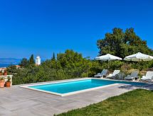 2 -sobni apartman 40 m2 na 1. katu, prema jugoistoku. Dnevni boravak/blagovaona 20 m2 s 1 kaučem za 2 osobe (150 cm, dužina 200 cm), TV-om sa sat. prijemnikom (plosnatim TV ekranom), klima uređajem. Izlaz na balkon. 1 soba s 1 franc. krevetom (160 cm, dužina 200 cm). Otvorena kuhinja (4 ploče za kuhanje, pećnica, zamrzivač, el. aparat za kavu). Tuš/bidet/WC. Klima uređaj (uz doplatu). Balkon 6 m2. Balkonski namještaj. Lijep panoramski pogled na more i mjesto. Na raspolaganju: Internet (wireless LAN [WLAN], besplatan).- postrojenja