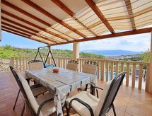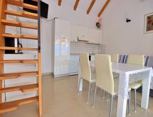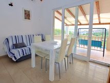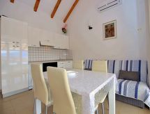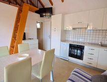 2 -sobna kuća 29 m2 na 2 etaže. Dnevni boravak/blagovaona s TV-om sa sat. prijemnikom (plosnatim TV ekranom), klima uređajem. Izlaz na terasu. 1 soba s 1 franc. krevetom (160 cm, dužina 200 cm). Otvorena kuhinja (4 ploče za kuhanje, pećnica, perilica za suđe, zamrzivač). Tuš/WC. Potkrovlje (ljestve) otvorena galerija s kosim stropom, visina stropa 100 - 200 cm s 1 franc. krevetom (150 cm, dužina 200 cm). Terasa 22 m2 (natkrita). Garnitura za sjedenje, ležaljke. Lijep pogled na more. Na raspolaganju: Internet (wireless LAN [WLAN], besplatan). 1 kućni ljubimac / pas dozvoljen.- postrojenja