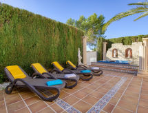 Vrlo velika, vrlo lijepa, vrlo komforna vila "Villa Toscana", na 3 kata. U samom mjestu 2.5 km od centra mjesta Denia, mirno, sunčano mjesto, 2 km od mora, 2 km od plaže. Za samostalno korištenje: parcela 380 m2, veliki, lijepi, njegovani vrt - bilje i drveće, bazen (3 x 7 m, 110- 180 cm dubok, sezonska dostupnost: 01.Jan. - 31.Dec.) s unutarnjim stepenicama. Vanjski tuš, hidromasažni bazen, mjesto za sjedenje, pergola, kućica s roštiljem. Parking (natkriti) na parceli. Supermarket 1.5 km, restoran 650 m, bar, cafe 550 m, pješčana plaža "Marineta Casiana" 2 km. Sportska lučica 2 km, škola jedrenja na dasci 2 km, škola jedrenja 2 km. Vlasnik ne prihvaća grupe mladih.Interior