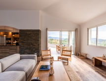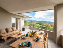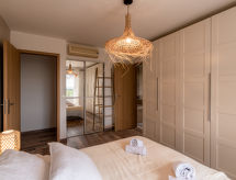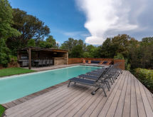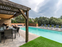 Velika vila "Villa Trinita". U zaseoku Trinité de Porto-Vecchio, 4 km od centra mjesta Porto-Vecchio, 2 km od mora, 5 km od plaže. Za samostalno korištenje: njegovani terasasti vrt (ograđen), bazen pravokutni, grijani (9 x 4 m, sezonska dostupnost: 01.May. - 01.Oct.). Vanjski tuš, kućica uz bazen s hladnjakom, boćalište. Bazen održava vlasnik/vrtlar. U kući: klimatizacija. Parking (za 3 automobila). Supermarket 350 m, trgovački centar 3 km, restoran 350 m, pješčana plaža "Cala Rossa / St Cyprien" 5 km. Sportska lučica 5 km. U blizini: Plage de Palombaggia 15 km, Plage de Santa Giulia 12 km, Bonifacio 30 km. Poznata jezera u blizini: Lac de l'Ospédale 20 km. Pješačke staze: Aiguilles de Bavella 50 km. Dodatna informacija: preporučljiv vlastiti prijevoz. Glavna prometnica u blizini.Interior