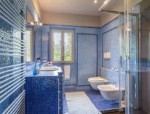 "Villa Vittoria", 6 -sobna kuća 250 m2 na 2 etaže, u prizemlju. Veliki dnevni boravak s otvorenim kaminom i TV-om sa sat. prijemnikom. Blagovaona. Kuhinja (4 ploče za kuhanje, pećnica, perilica za suđe, zamrzivač, el. aparat za kavu, kuhinjski otok). Odv. WC. Gornji kat: radna soba. 2 bračne sobe. 1 soba s 2 kreveta. Kada/bidet/WC, tuš/bidet/WC, hidromasažnim tušem. Panoramski pogled na krajolik. Na raspolaganju: perilica za rublje, mrežice protiv komaraca. Internet (wireless LAN [WLAN], besplatan).- Aktivnosti u blizini
