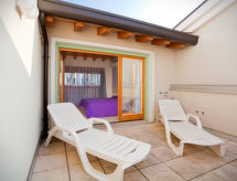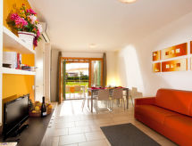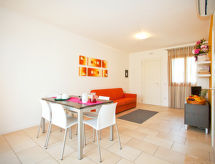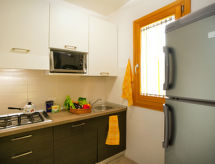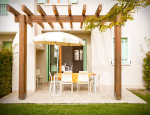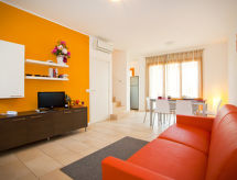 Veliki, lijepi turistički kompleks "Villaggio A Mare", na 4 kata. 80 kuća u turističkom naselju. 130 apartmana u residenceu. U četvrti Lido Altanea 4 km od centra mjesta Caorle, 1.5 km od centra mjesta Porto Santa Margherita, 75 km od centra mjesta Venezia, 500 m od mora. Za zajedničko korištenje: parcela 45'000 m2 (ograđena), njegovani vrt - travnjak i bilje, bazen u obliku bubrega (700 m2, sezonska dostupnost: 21.Apr. - 30.Sep.). Bazen za djecu, hidromasažni bazen, dječje igralište. U kompleksu: recepcija, restoran, bar, bistro, wireless LAN [WLAN], trgovina, kiosk. Supermarket 600 m, željeznička postaja "San Donà (Milano-Venezia-Triest)" 28 km, pješčana plaža 500 m, natkriveni bazen 400 m. Golf teren (18 rupa) 4 km. Vlasnik ne prihvaća grupe mladih.Interior