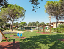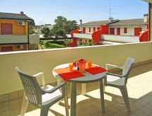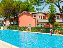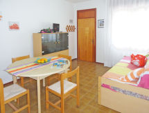 Veliko turističko naselje "Villaggio Azzurro". 330 apartmana u residenceu. U četvrti Bibione-Spiaggia 500 m od centra mjesta Bibione, 13 km od centra mjesta Lignano, 100 km od centra mjesta Venezia, 800 m od mora. Za zajedničko korištenje: parcela - bilje i drveće, 2 bazena (20 x 10 m, sezonska dostupnost: 20.May. - 15.Sep.). Bazen za djecu, dječje igralište. Parking uz kuću na parceli. Trgovina živežnim namirnicama 100 m, restoran 150 m, željeznička postaja "Latisana (Milano-Venezia-Triest)" 21 km, pješčana plaža 800 m. Golf teren (18 rupa) 8.5 km.Interior