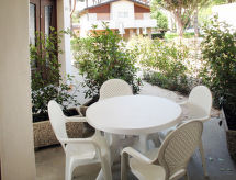 Mali turistički kompleks "Villaggio Battiston". 6 kuća u residenceu. U četvrti Bibione-Spiaggia 500 m od centra mjesta Bibione, 13 km od centra mjesta Lignano, 100 km od centra mjesta Venezia, 800 m od mora. Za zajedničko korištenje: parcela (ograđena), vrt - bilje. U kući: najam bicikli. Supermarket, restoran 450 m, željeznička postaja "Latisana (Milano-Venezia-Triest)" 21 km, pješčana plaža 800 m, termalno kupalište "Bibione Thermae" 2.6 km. Golf teren (18 rupa) 11 km. Vlasnik ne prihvaća grupe.Interior