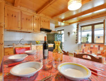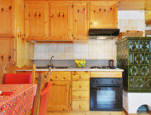 Kuća "Villaggio Ladino", okružena drvećem. U zaseoku Mazzin 2 km od centra mjesta Pera, 3 km od centra mjesta Campitello, 5 km od centra mjesta Canazei, mirno, sunčano mjesto, direktno na rubu šume, 2 km od skijališta, prema jugu. Za zajedničko korištenje: vrt. U kući: centralno grijanje, grijanje na raspolaganju samo od 01.12. do 01.05.. Trgovina 300 m, supermarket 500 m, restoran, bar, cafe 300 m. Skilift 3 km, sjedežnica 2 km, postaja ski busa 200 m. U blizini: Sella Ronda 4.5 km, Lago di Carezza 18 km.Interior