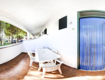 Turistički kompleks "Villaggio San Pablo", prikladan za djecu. 35 kuća u turističkom naselju. 70 apartmana u residenceu. 4.5 km od centra mjesta Vieste, 150 m od mora, 150 m od plaže. Za zajedničko korištenje: parcela 10'000 m2 (ograđena), vrt - bilje i drveće, bazen (15 x 6 m, 100- 180 cm dubok, sezonska dostupnost: 19.May. - 26.Sep.). WC uz bazen, bazen za djecu, vanjski tuš, hidromasažni bazen, tenis (15.04. - 26.09.), stolni tenis, odbojka na pijesku, roštilj, dječje igralište. U kompleksu: recepcija, restoran, bar, prostorija za druženje bistro s TV, wireless LAN [WLAN], prostorija za fitnes, hidromasažni bazen, stolni tenis, perilica za rublje (za zajedničko korištenje, uz doplatu). Promjena posteljine (dodatno uz doplatu). Promjena ručnika (dodatno uz doplatu). Čišćenje apartmana moguće (uz doplatu). Doručak puni pansion može na upit (uz doplatu). Parking. Supermarket 100 m, željeznička postaja "San Mennaio" 20 km, pješčana plaža "Scialmarino" 150 m. U blizini: Peschici 15 km, Foggia 100 km, Bari 115 km. Dodatna informacija: preporučljiv vlastiti prijevoz. Animacija u sezoni. Prikladno za obitelji, babysitting u sezoni (uz doplatu). Obavezna kapa za kupanje. Objekti se mogu razlikovati po položaju, veličini i karakteristikama parcele. Objekti se mogu razlikovati po stambenom prostoru, podjeli prostorija, opremi i namještaju.Interior