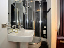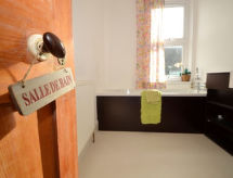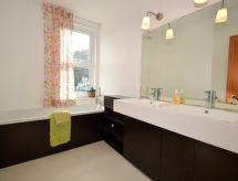 4 -sobna obiteljska kuća na 2 etaže. Prostrano i svijetlo, komforno i ukusno uređena: otvoreni dnevni boravak s TV-om, plosnatim TV ekranom i DVD-om. Otvorena kuhinja (4 ploče za kuhanje, pećnica, mikrovalna pećnica, zamrzivač) s stolom za blagovanje. Grijanje. Gornji kat: 1 bračna soba s 1 bračnim krevetom i tušem/WC-om. 2 bračne sobe, svaka soba s 1 bračnim krevetom. Kada/tuš/WC. Grijanje. Garnitura za sjedenje. Lijep pogled na na grad. Na raspolaganju: perilica za rublje, sušilica. Internet (wireless LAN [WLAN], besplatan). Dodatna informacija: kuća za nepušače.- postrojenja