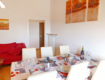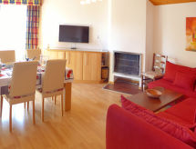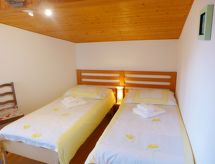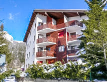 4 -sobni apartman 80 m2 na 4. katu. Komforno i lijepo uređen: dnevni boravak/blagovaona s kosim stropom s otvorenim kaminom, kabelskom TV, plosnatim TV ekranom, CD-om i DVD-om. 1 soba s 2 kreveta (90 cm, dužina 200 cm). 1 soba s 1 franc. krevetom (160 cm, dužina 200 cm). 1 soba s 1 bračnim krevetom (2 x 90 cm, dužina 190 cm), tušem/WC-om. Kuhinja (pećnica, perilica za suđe, 4 staklokeramičke ploče za kuhanje, toster, kuhalo za vodu, mikrovalna pećnica, el. aparat za kavu, raclette roštilj, set za fondue (sir)). Kada, odv. WC. Mali balkon, prema jugu i prema istoku. Na raspolaganju: sušilo za kosu. Internet (wireless LAN [WLAN], besplatan). Garaža br. 18, visina 185 cm, širina 350 cm. Dodatna informacija: apartman za nepušače. Najviše 1 kućni ljubimac / pas dozvoljen.- Značajke smještaja