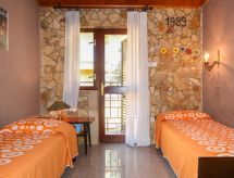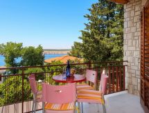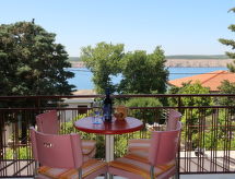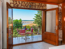 "Visnja (JAD126)", 2 -sobni apartman 55 m2 na 1. katu. 1 soba s 1 bračnim krevetom (2 x 80 cm, dužina 200 cm). Izlaz na balkon. 1 soba s 2 kreveta (80 cm, dužina 190 cm). Izlaz na balkon. Kuhinja (1 ploča za kuhanje, 3 plamena za kuhanje, toster, kuhalo za vodu, mikrovalna pećnica, zamrzivač, el. aparat za kavu) s stolom za blagovanje i TV-om sa sat. prijemnikom. Izlaz na terasu. Kada/WC. Balkon 6 m2, balkon 12 m2, terasa 21 m2. Garnitura za sjedenje, balkonski namještaj, ležaljke. Pogled na more. Na raspolaganju: Internet (wireless LAN [WLAN], besplatan). Dodatna informacija: kuća za nepušače.- postrojenja