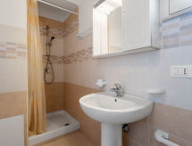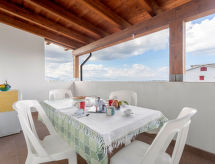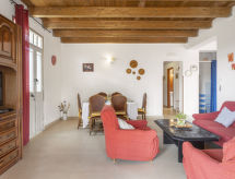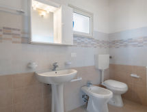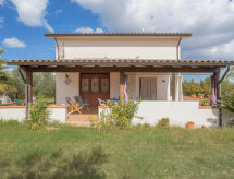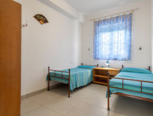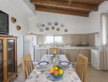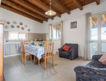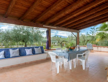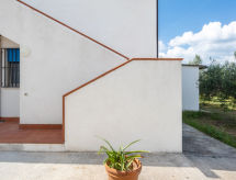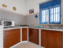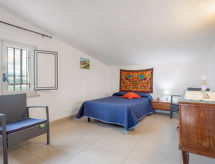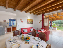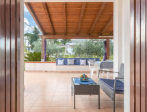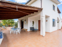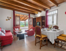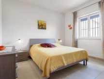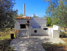 7 -sobna kuća 180 m2 na 2 etaže, u prizemlju. Svrsishodno i komforno uređena: dnevni boravak/blagovaona s TV-om (plosnatim TV ekranom), klima uređajem i grijanjem na topli zrak. Izlaz na terasu. 1 bračna soba s ventilatorom. 1 soba s 2 kreveta i ventilatorom. 1 soba s 1 x 2 kreveta na kat, ventilatorom. Kuhinjska niša (4 ploče za kuhanje, mikrovalna pećnica, zamrzivač, el. aparat za kavu). Tuš/bidet/WC. Klima uređaj, grijanje toplim zrakom (uz doplatu), bojlerom (50 litara). Gornji kat: (vanjske stepenice) dnevni boravak/blagovaona s TV-om (plosnatim TV ekranom). Izlaz na terasu. 1 bračna soba s ventilatorom. 1 soba s 1 bračnim krevetom (140 cm). Kuhinjska niša (4 ploče za kuhanje, zamrzivač). Tuš/bidet/WC. Terasa 25 m2 (natkrita) terasa 20 m2 (natkrita). Garnitura za sjedenje, vrtni roštilj. Pogled u daljini na more i planine. Na raspolaganju: perilica za rublje, glačalo, mrežice protiv komaraca, visoka dječja stolica, dječji krevetić do 2 godine, sušilo za kosu. Internet (wireless LAN [WLAN], besplatan). Najviše 1 kućni ljubimac / pas dozvoljen.- postrojenja