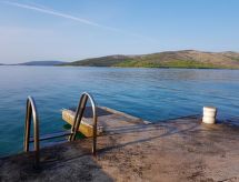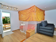 "Viva-by the Sea-by the Pool", 2 -sobna kuća 68 m2 na 2 etaže. Moderno uređena: 1 soba s 1 franc. krevetom (160 cm, dužina 200 cm), tušem/WC-om. Izlaz na terasu. Gornji kat: dnevni boravak/blagovaona s tušem/WC-om i TV-om sa sat. prijemnikom (plosnatim TV ekranom). Izlaz na balkon. Otvorena kuhinja (perilica za suđe, 4 staklokeramičke ploče za kuhanje, toster, kuhalo za vodu, el. aparat za kavu). Balkon 8 m2. Balkonski namještaj. Lijep panoramski pogled na more. Na raspolaganju: Internet (wireless LAN [WLAN], besplatan). Dodatna informacija: kuća za nepušače. Vlastiti ulaz.- postrojenja