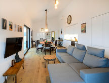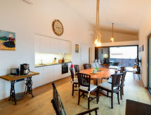 "Viva-by the Sea-Panorama Penthouse", 3 -sobni apartman u potkrovlju 78 m2 na 2. katu. Moderno uređen: dnevni boravak/blagovaona s TV-om sa sat. prijemnikom (plosnatim TV ekranom), klima uređajem. Izlaz na balkon. 1 soba s 1 franc. krevetom (180 cm, dužina 200 cm), tušem/WC-om, duplim umivaonikom i klima uređajem. 1 soba s 2 kreveta (90 cm, dužina 200 cm), tušem/WC-om, duplim umivaonikom i klima uređajem. Izlaz na balkon. Otvorena kuhinja (pećnica, perilica za suđe, 4 staklokeramičke ploče za kuhanje, toster, kuhalo za vodu, zamrzivač, el. aparat za kavu). Klima uređaj, grijanje toplim zrakom. Balkon 30 m2. Balkonski namještaj. Prekrasan panoramski pogled na more. Na raspolaganju: mrežice protiv komaraca. Internet (wireless LAN [WLAN], besplatan). Dodatna informacija: kuća za nepušače. Vlastiti ulaz.- postrojenja