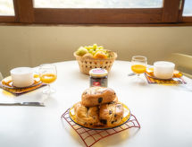Kuća s više apartmana "Vostok Zodiaque", na 17 kata. 150 m od centra mjesta Corbier, 100 m od skijališta. Za zajedničko korištenje: bazen grijani (25 x 12 m, 90- 200 cm dubok, sezonska dostupnost: 16.Dec. - 16.Apr. i 01.Jul. - 31.Aug. bazen je otvoren u vremenu: 10:00-19:00). U kompleksu: dizalo, spremište za skije. Javni parking. Trgovina, trgovina živežnim namirnicama, restoran 50 m, bar 100 m, autobusna postaja 250 m, vanjski bazen 50 m. Skilift, sjedežnica, skijaške staze, škola skijanja 100 m, dječji vrtić na snijegu 50 m, staza za sanjkanje 100 m. Dodatna informacija: Mogućnost rezerviranja dodatnih smještajnih jedinica. The swimming pool facilities are 100 m from the residence at the municipal pool. Entrance for under 3’s is not allowed. Children between 3 and 5 years old are allowed subject to weather conditions (in winter). Entrance tickets to the swimming pool are included in your rental price and will be given to you when you check in.Interior