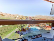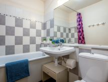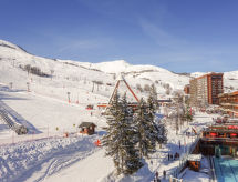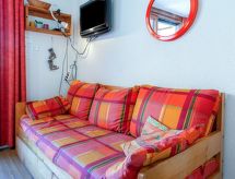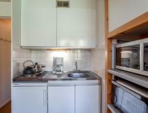 1 -sobni studio 24 m2 na 8. katu, prema zapadu. Svrsishodno uređen: dnevni boravak/blagovaona s 1 krevetom na izvlačenje (2 osobe 2 x 80 cm, dužina 190 cm), TV-om (plosnatim TV ekranom), radiom i električnim roletnama. Izlaz na balkon. Niša za spavanje s zavjesom s 1 franc. krevetom (140 cm, dužina 190 cm). Kuhinjska niša (2 ploče za kuhanje, pećnica, mikrovalna pećnica, el. aparat za kavu). Kada/WC. El. grijanje. Parketni pod. Balkon 4 m2, prema zapadu. Vrlo lijep pogled na skijašku stazu, bazen i mjesto. Na raspolaganju: glačalo, sušilo za kosu. Internet (wireless LAN [WLAN], uz doplatu). Dodatna informacija: apartman za nepušače. Protupožarni alarm.- postrojenja
