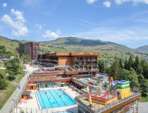 Kuća s više apartmana "Vostok Zodiaque", na 17 kata. 150 m od centra mjesta Corbier, 100 m od skijališta. Za zajedničko korištenje: bazen grijani (25 x 12 m, 90- 200 cm dubok, sezonska dostupnost: 16.Dec. - 16.Apr. i 01.Jul. - 31.Aug. bazen je otvoren u vremenu: 10:00-19:00). U kompleksu: dizalo, spremište za skije. Javni parking. Trgovina, trgovina živežnim namirnicama, restoran 50 m, bar 100 m, autobusna postaja 250 m, vanjski bazen 50 m. Skilift, sjedežnica, skijaške staze, škola skijanja 100 m, dječji vrtić na snijegu 50 m, staza za sanjkanje 100 m. Dodatna informacija: Mogućnost rezerviranja dodatnih smještajnih jedinica. The swimming pool facilities are 100 m from the residence at the municipal pool. Entrance for under 3’s is not allowed. Children between 3 and 5 years old are allowed subject to weather conditions (in winter). Entrance tickets to the swimming pool are included in your rental price and will be given to you when you check in.Interior