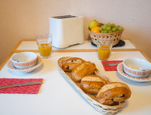 Kuća s više apartmana "Vostok Zodiaque", na 17 kata. 150 m od centra mjesta Corbier, 100 m od skijališta. Za zajedničko korištenje: bazen grijani (25 x 12 m, 90- 200 cm dubok, sezonska dostupnost: 16.Dec. - 16.Apr. i 01.Jul. - 31.Aug. bazen je otvoren u vremenu: 10:00-19:00). U kompleksu: dizalo, spremište za skije. Javni parking. Trgovina, trgovina živežnim namirnicama, restoran 50 m, bar 100 m, autobusna postaja 250 m, vanjski bazen 50 m. Skilift, sjedežnica, skijaške staze, škola skijanja 100 m, dječji vrtić na snijegu 50 m, staza za sanjkanje 100 m. Dodatna informacija: Mogućnost rezerviranja dodatnih smještajnih jedinica. The swimming pool facilities are 100 m from the residence at the municipal pool. Entrance for under 3’s is not allowed. Children between 3 and 5 years old are allowed subject to weather conditions (in winter). Entrance tickets to the swimming pool are included in your rental price and will be given to you when you check in.Interior