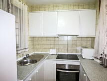 "Waldorff", 2 -sobni apartman 50 m2 na 11. katu, prema istoku. Objekt pogodan za 2 odraslih + 2 djece. Svrsishodno i komforno uređen: dnevni boravak/blagovaona 14 m2 s 2 kauča za 1 osobu i digitalnim TV. Izlaz na lođu. 1 soba 11 m2 s 2 kreveta (90 cm, dužina 190 cm), ventilatorom. Kuhinja (pećnica, 3 staklokeramičke ploče za kuhanje, toster, kuhalo za vodu, mikrovalna pećnica, zamrzivač, el. aparat za kavu). Kada/bidet/WC. El. grijanje. Velika terasa 12 m2. Pogled na mjesto. Na raspolaganju: perilica za rublje, glačalo, sušilo za kosu. AT-322137-BM- postrojenja