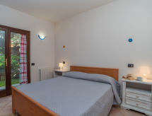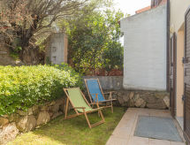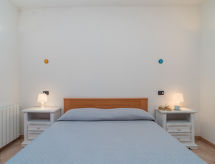 "Wave", 2 -sobni apartman 45 m2, u povišenom prizemlju. Jednostavno i udobno uređen: dnevni boravak/blagovaona s 1 kaučem za 2 osobe (140 cm, dužina 190 cm), TV-om. Izlaz na terasu. 1 bračna soba. Izlaz u vrt, na terasu. Kuhinjska niša (pećnica, 4 plamena za kuhanje, toster, kuhalo za vodu). Tuš/bidet/WC. Bez grijanja. 2 male terase, mali vrt. Na raspolaganju: perilica za rublje, visoka dječja stolica, dječji krevetić (uz doplatu), sušilo za kosu. Dodatna informacija: 1 kućni ljubimac / pas dozvoljen. Vlastiti ulaz.- postrojenja